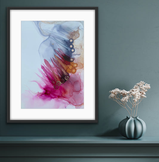 In Dreams - Original abstract artwork in pink, purple and gold.