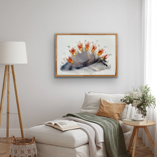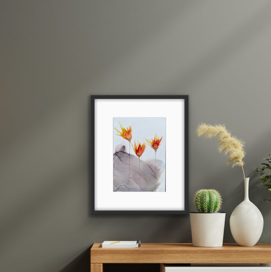 Standing Proud - Original abstract floral artwork with ethereal ochre flowers.