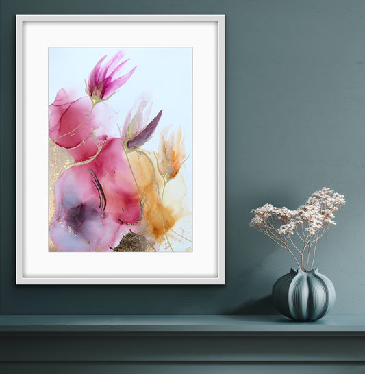 The Golden Hour - original floral alcohol ink painting with gold leaf.